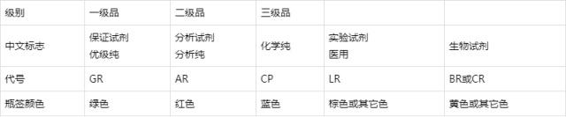 我國化學試劑的等級標志和符號